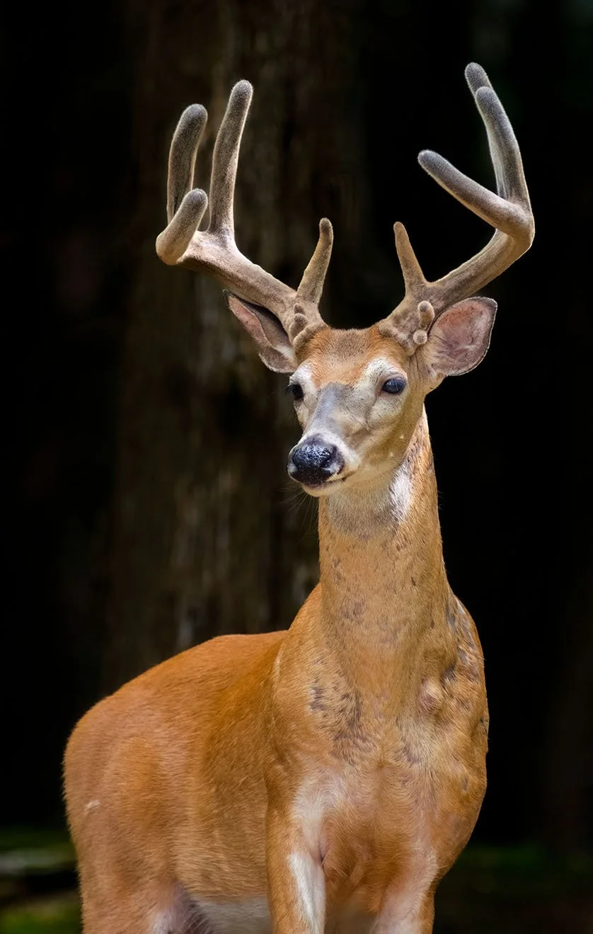 Text that reads "Gentle Souls of the Forest" in green cursive font, and "A Photographic Tribute to the Beautiful and Peaceful Whitetail Deer" in orange cursive font on a black background.